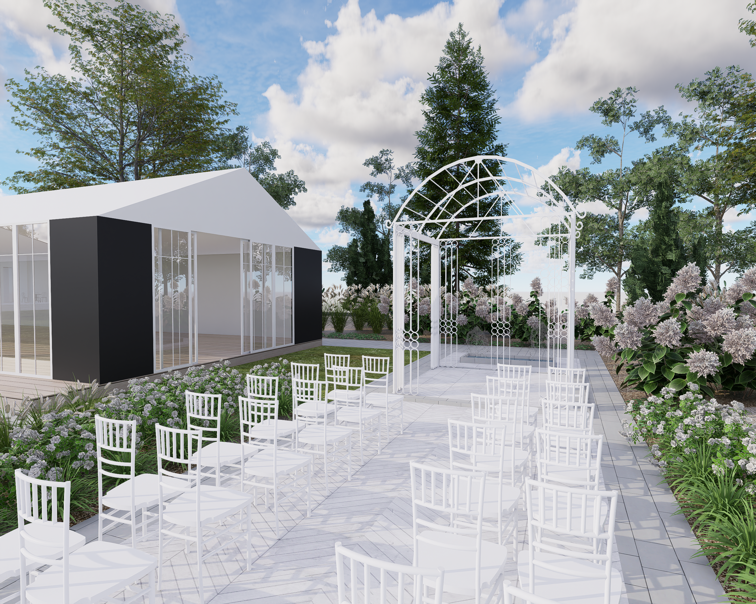 Projekt powstał we współpracy z firmą Avantgarden. Naszym głównym założeniem było stworzenie eleganckiego i reprezentacyjnego ogrodu wokół sali weselnej – przestrzeni, która podkreśla charakter miejsca już od pierwszego kontaktu z gośćmi.