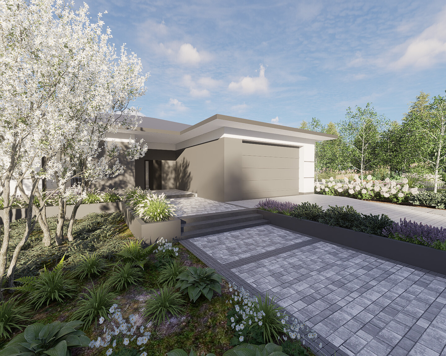 Ten projekt ogrodu powstał na niewielkiej działce przy zabudowie szeregowej.