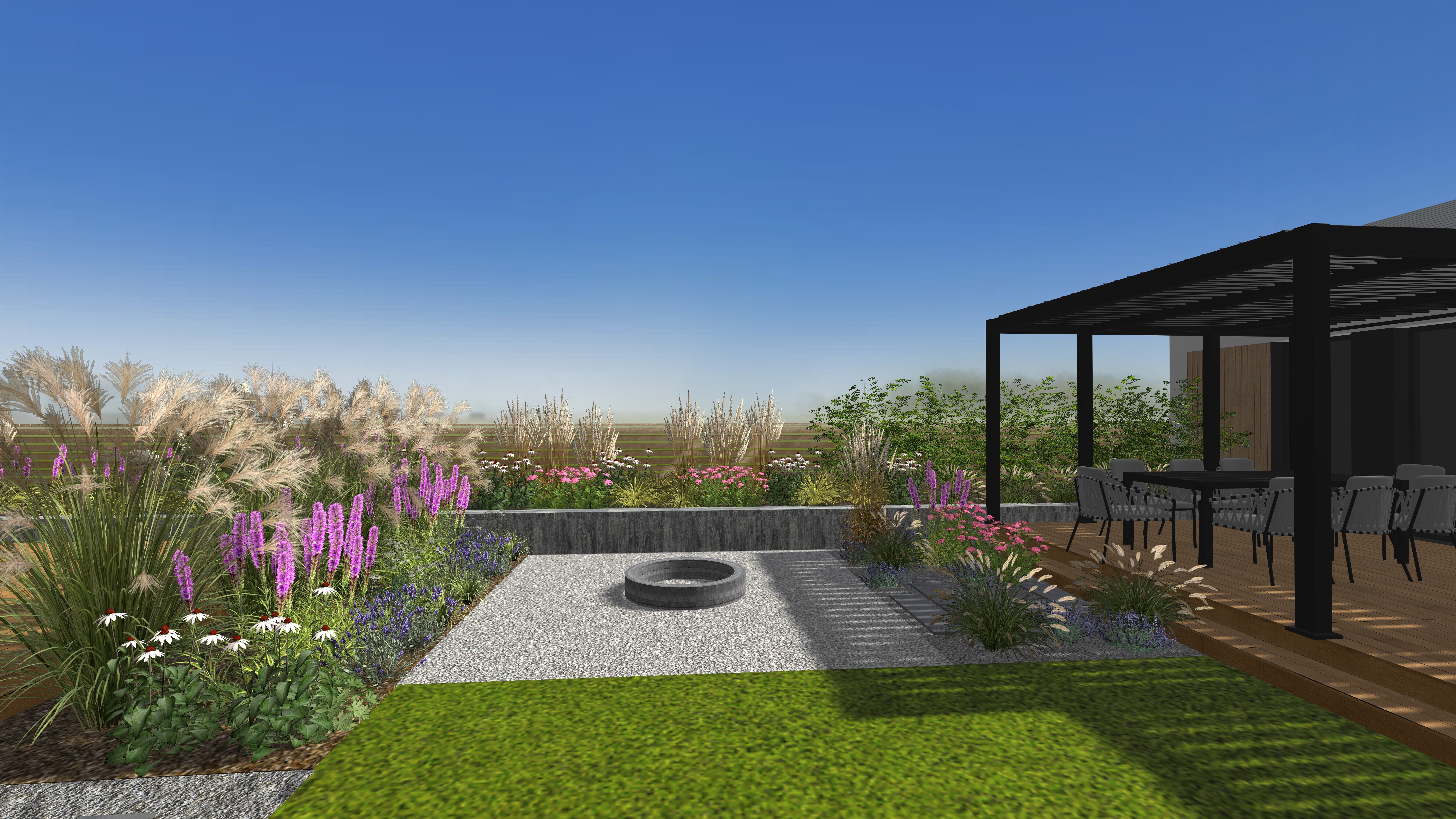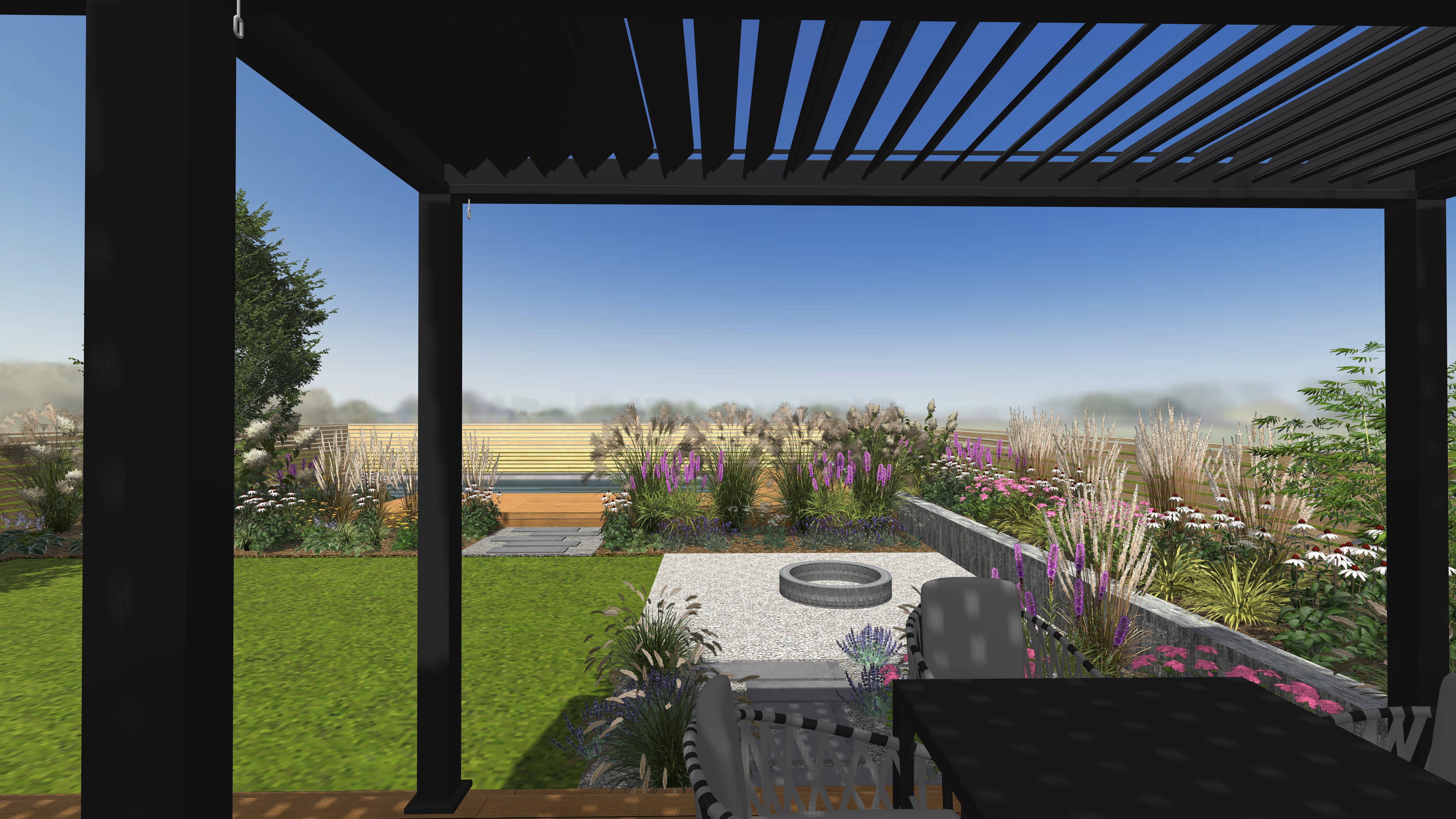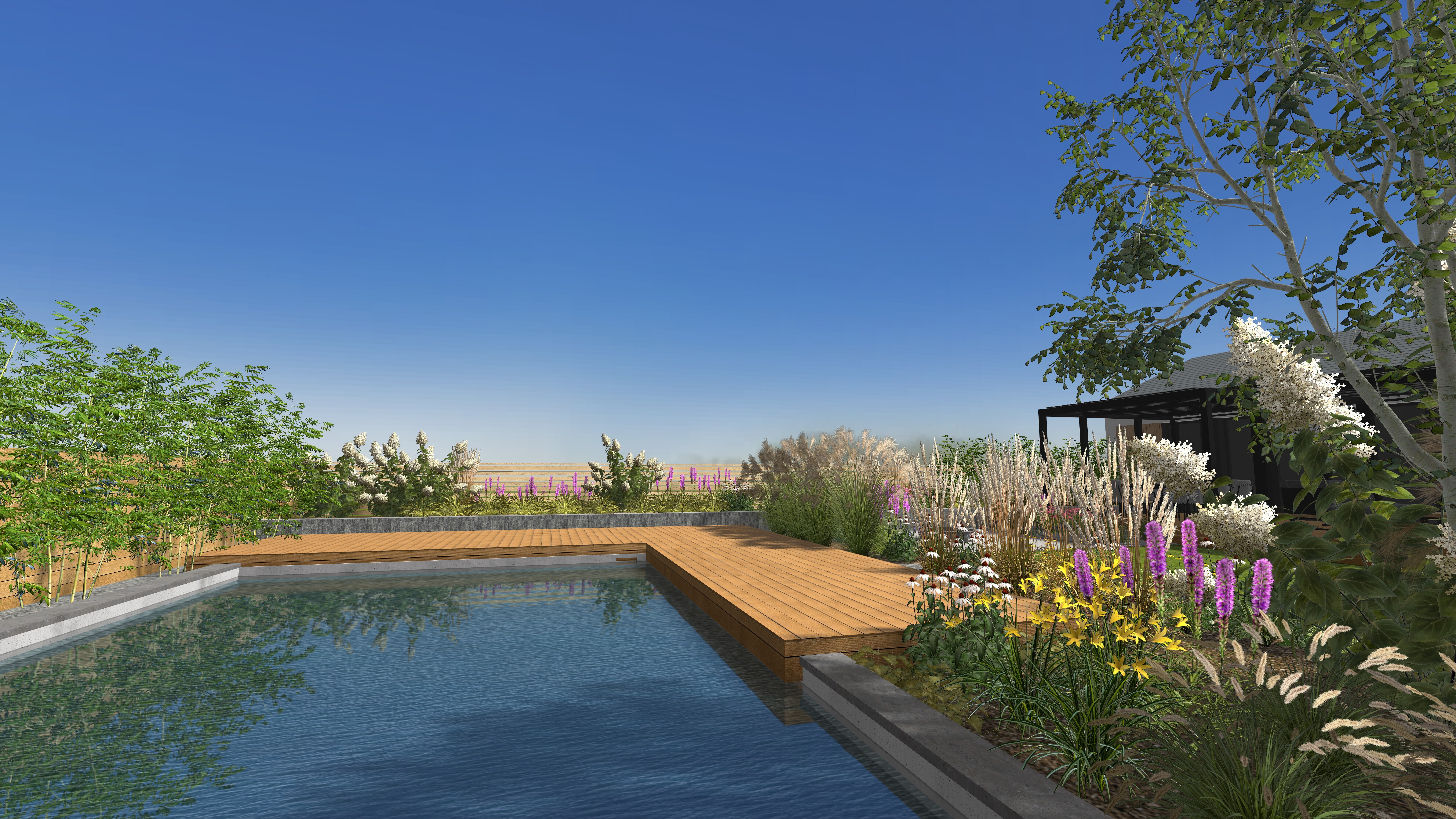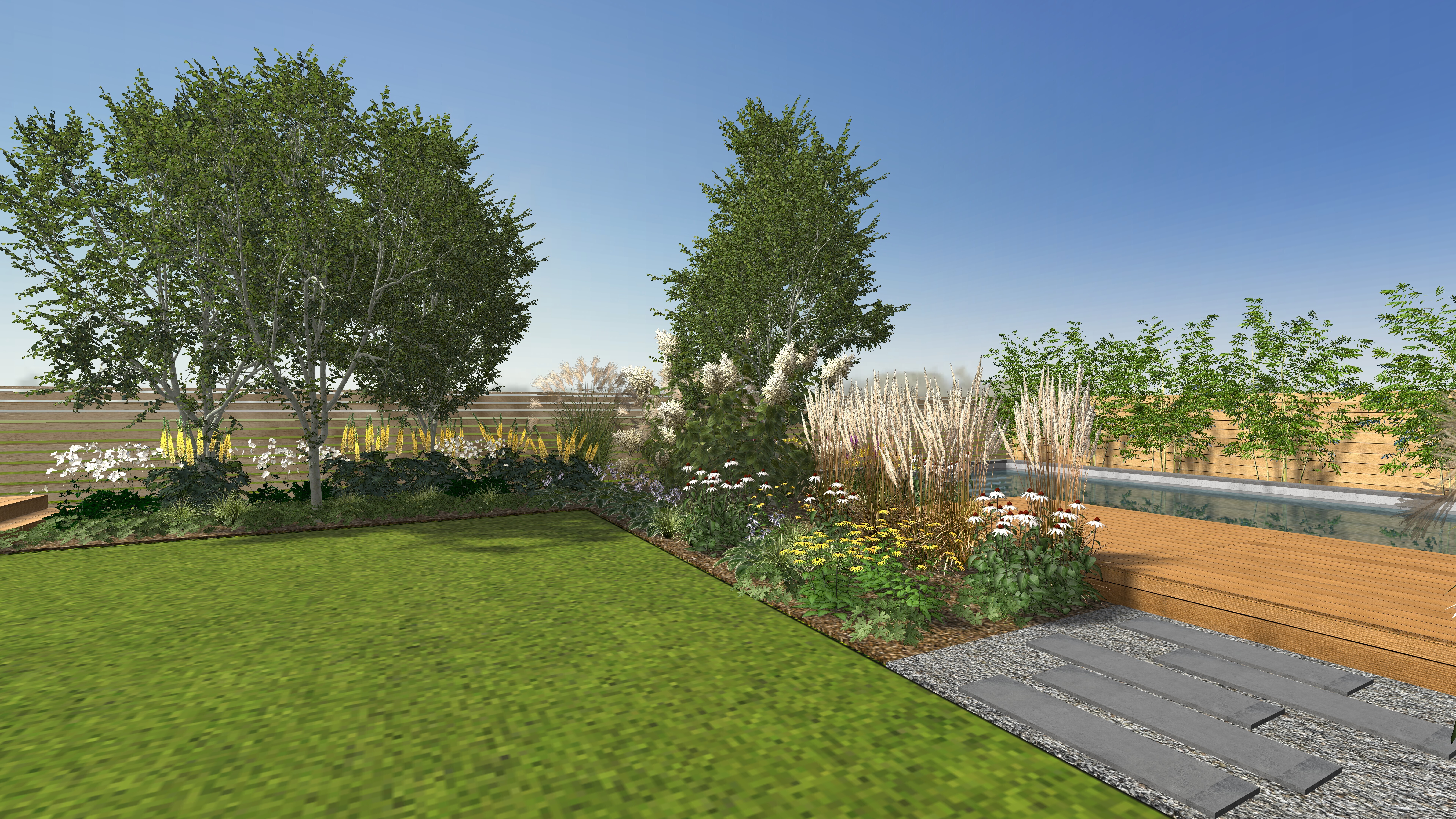 Ten projekt ogrodu powstał wokół basenu, który był już w trakcie budowy. Moim zadaniem było stworzenie spójnej, funkcjonalnej przestrzeni, która połączy nowoczesny charakter domu z naturalnymi, bardziej miękkimi nasadzeniami.